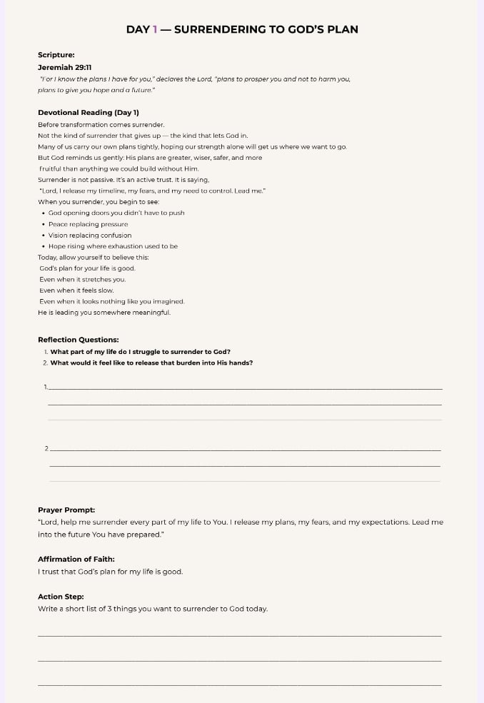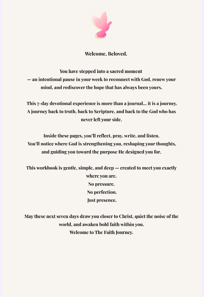 The Faith Journey is your 7-day devotional workbook designed to help you:
